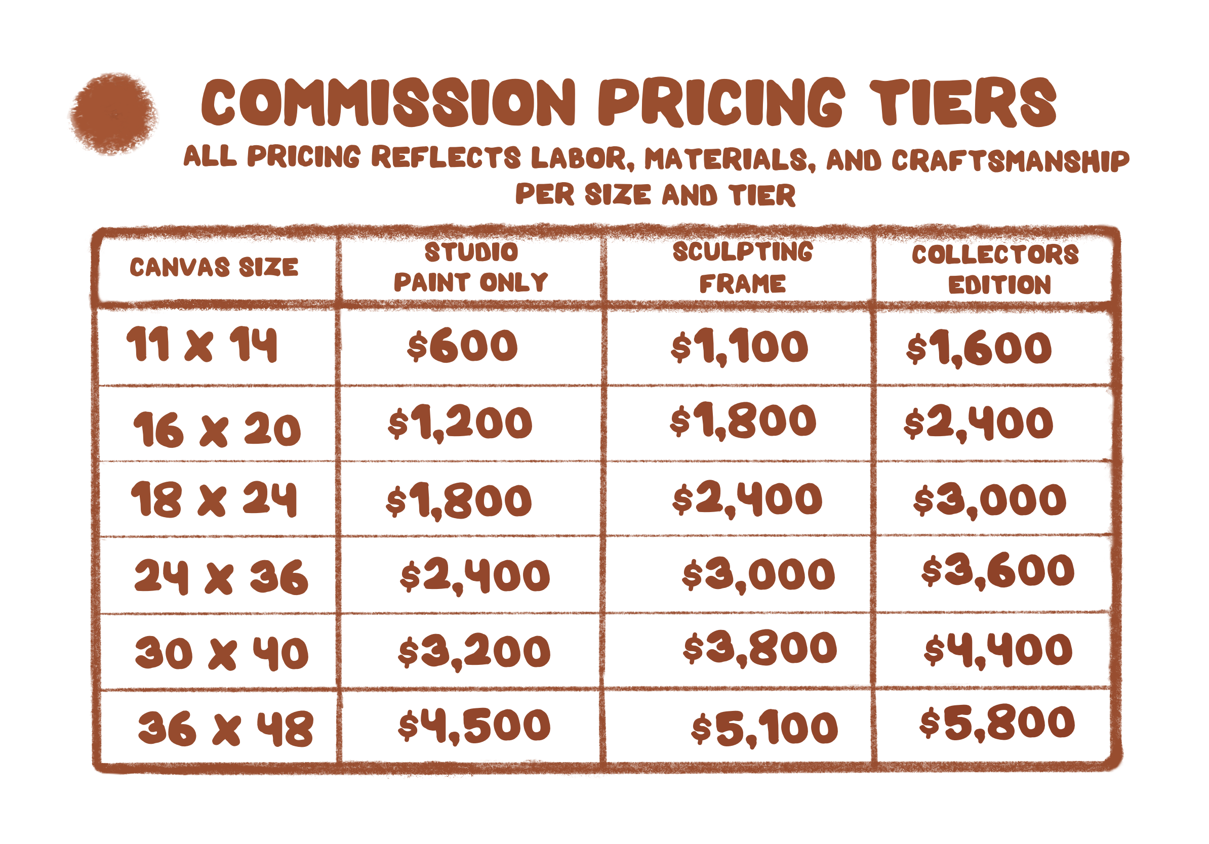 Commissions are FIRST COME, FIRST SERVED.