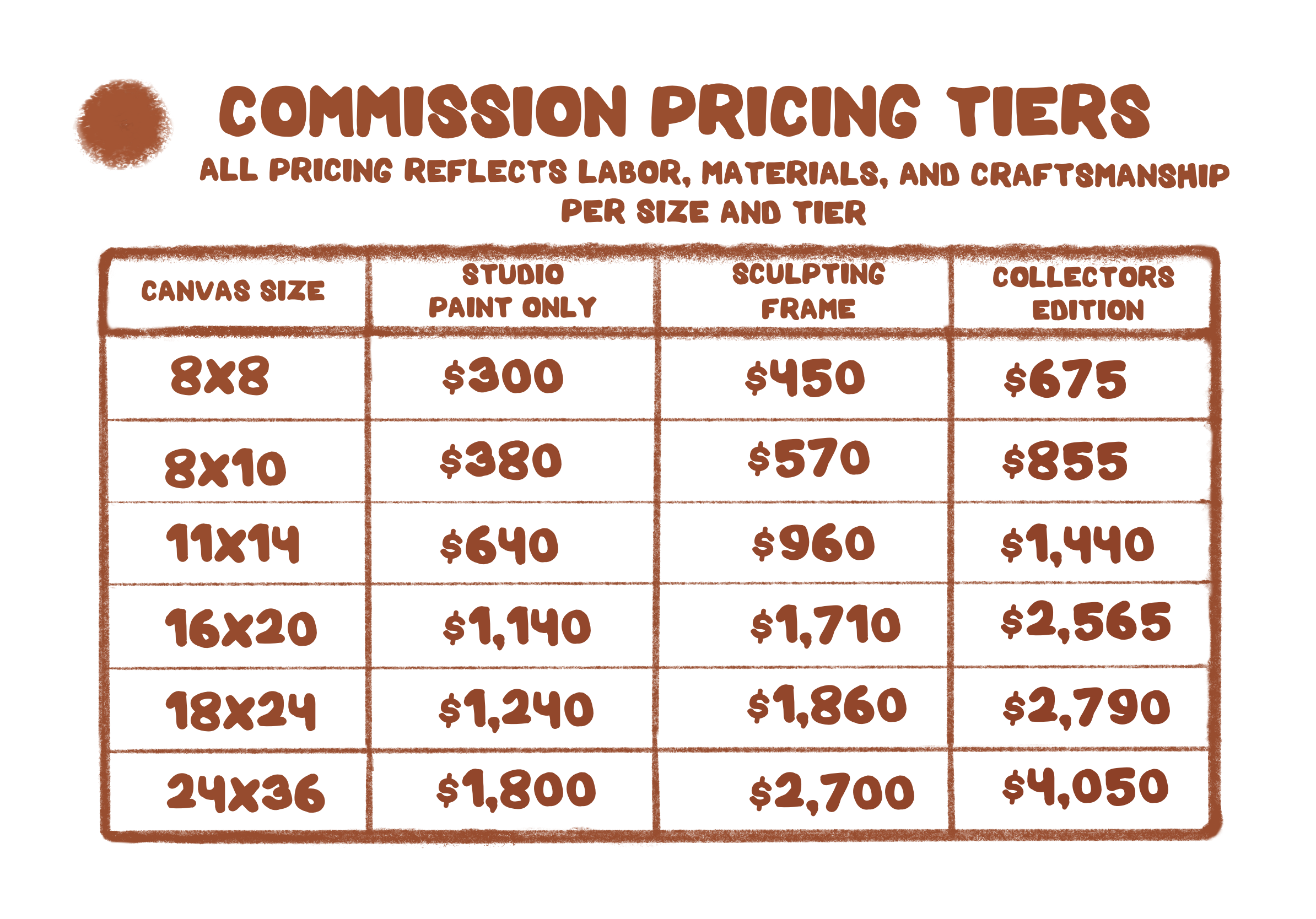 Commissions can be paid either 100% upfront or split 50% after sketch approval and 50% before shipping.